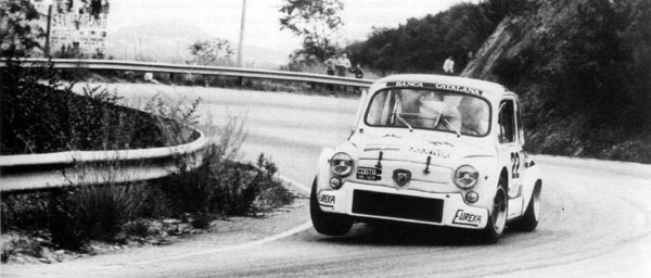 el seu 600 Abarth, aixecant roda. |