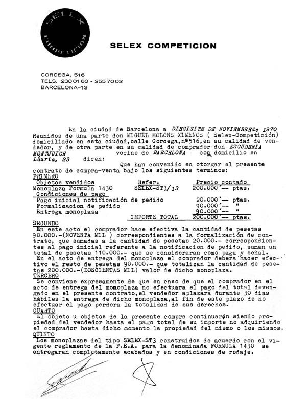 Factura de compra del Selex 1430 de l'Escuderia